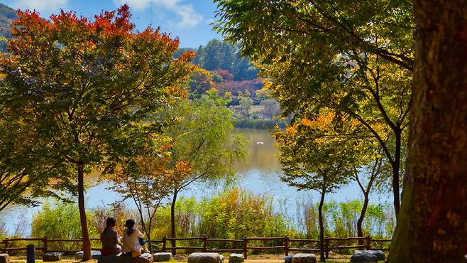 호수 주변을 따라 이어지는 단풍길은 걷는 것만으로도 힐링이 되고, 어울정원에는 1만㎡ 규모의 코스모스 군락이 바람에 흔들리며 가을의 낭만을 더한다.