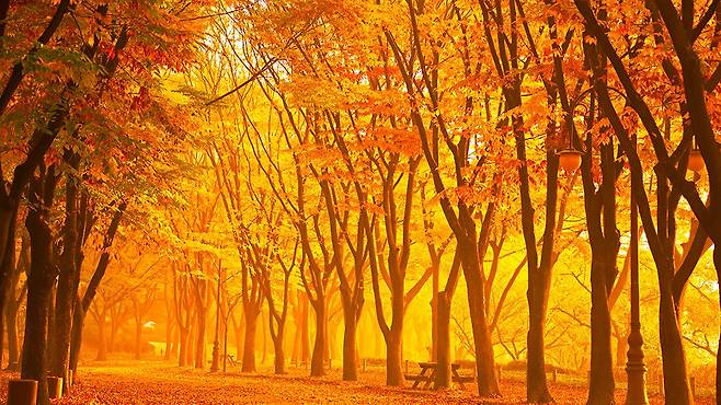 인천광역시 남동구 무네미로 236, 장수동에 자리한 인천대공원은 10월 중순부터 11월 초 사이, 붉게 물든 단풍길과 황금빛 메타세쿼이아길로 절정을 맞는다.