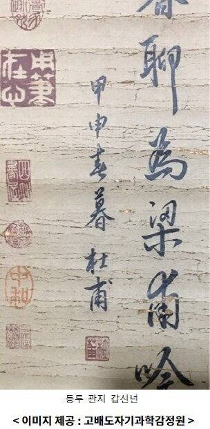 중국 당나라 유명 시인 두보(712~770)의 '등루'라는 시 유묵이 한국에서 발견됨