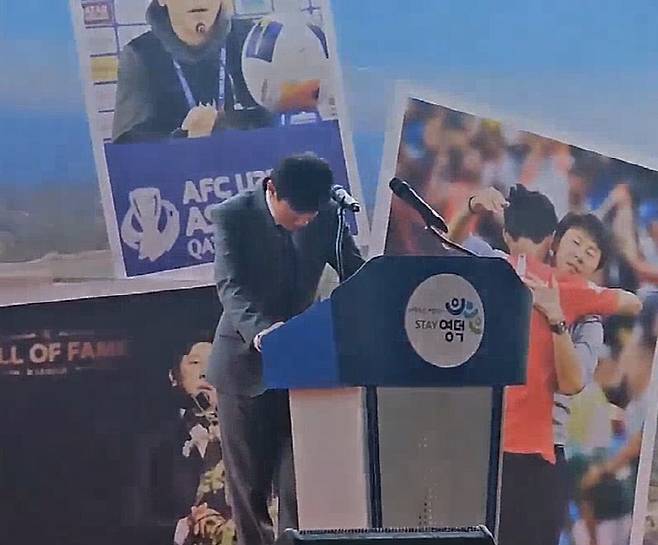 '레전드' 신태용 감독(55)이 무대에 등장하자 객석에선 "신태용!" 연호와 함께 뜨거운 환호성이 쏟아졌다. 7일 경북 영덕군 창포해맞이축구장이 '신태용축구공원'이라는 새 이름으로 개장했다. 이날 개장기념식엔 전국 각지 축구인, 정치인, 인도네시아 관련 기관들로부터 수백 개의 축하화환이 답지했다. K리그 득점왕 모임 'FC황금발', 축구를 사랑하는 여성 트로트 가수들의 FC'트롯퀸스' 등이 식전공연과 식전경기를 책임졌다. 영덕군과 유소년 축구 활성화를 위해 협업중인 '레전드' 차범근 감독(팀차붐 이사장)을 비롯 노상래 울산HD 유소년 디렉터, 이상윤 해설위원, 정조국 프로축구연맹 TSG위원 등 선후배 스타들도 함께 했다. 기념식에선 박형수 국회의원, 김광열 영덕군수, 김성호 영덕군의회 의장, 손호영 경북축구협회장, 하상목 영덕군축구협회장 등이 잇달아 연단에 올라 '영덕이 낳은 대한민국 축구 레전드' 신 감독을 향한 헌사를 전한 후 이날의 주인공 신 감독이 무대에 올랐다.