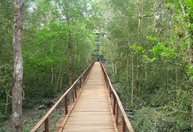 1984년에 국립공원으로 지정되었고, 1987년에는 유네스코 세계 유산으로 지정된 순다르반스는 광대한 맹그로브 숲으로 유명합니다. 이 숲은 인도와 방글라데시 지역을 합쳐 면적 14,000㎢에 달하며, 여기에는 약 453종의 야생동물이 서식하고 있습니다.