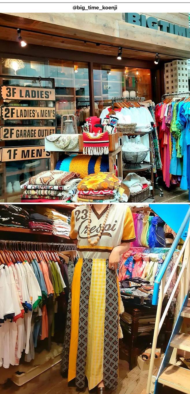 도쿄에 빈티지를 보러 왔다면 반드시 들러야 할 곳, 고엔지 거리. 거리 도쿄의 번화가에서 살짝 떨어진 고엔지는 개성있는 의류와 액세서리를 판매하는 숍들이 즐비한 빈티지 성지다. 거리 중간중간 카페와 밥집도 포진되어 있어 느긋하게 쇼핑을 즐기기 좋다. 일본의 빈티지 체인점 ‘빅타임’ 고엔지점은 미국과 유럽에서 들여온 빈티지 의류를 다루며, 1층엔 남성복, 2층엔 여성복으로 나뉘어 있으니 천천히 둘러볼 것을 추천한다. 이곳에선 가을 패션의 멋을 더해줄 빈티지 안경, 세상에 하나 뿐인 가방, 펑크 스타일의 볼드한 반지와 팔찌 등 액세서리를 저렴한 가격에 건지기 좋다.
