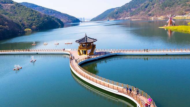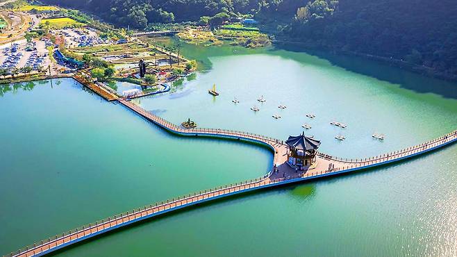 공원의 중심에는 ‘백년수중다리’가 자리한다. 수면 위를 걷는 듯한 독특한 경험과 함께, 다리 위에서 바라보는 옥연지의 풍경은 자연과 사람이 어우러진 풍경화 그 자체다.
