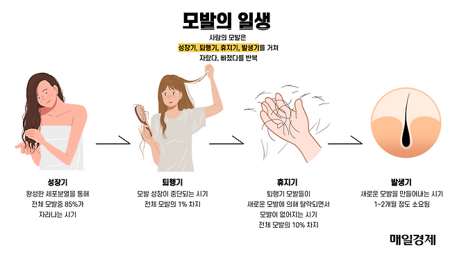 사람의 모발은 성장기-퇴행기-휴지기-발생기를 거쳐