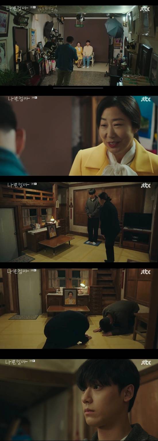 18일 방송된 JTBC 수목드라마 '나쁜 엄마'에서는 영정사진을 찍은 뒤 아들 최강호(이도현 분)에게 자신의 장례식 상황을 연습시키는 진영순(라미란)의 모습이 전파를 탔다.