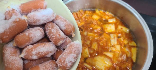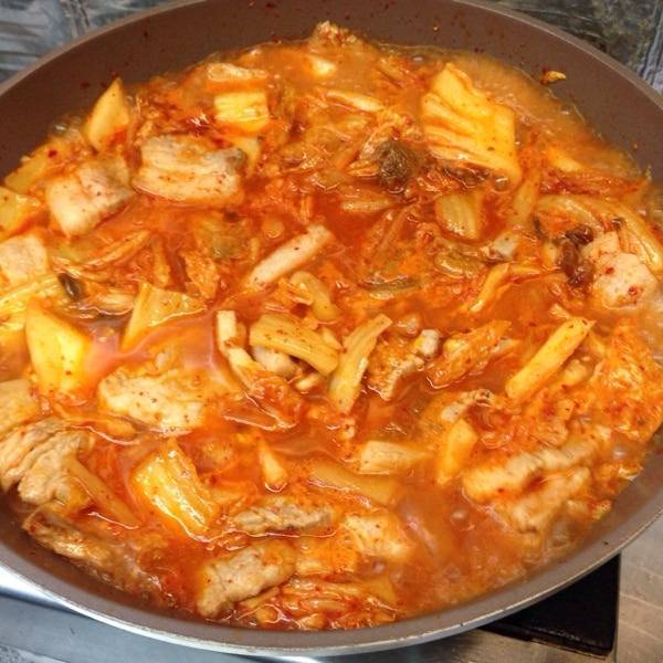 김치찌개를 끓일 때 김치의 염도를 조절하세요(싱겁게 발효된 김치 사용).