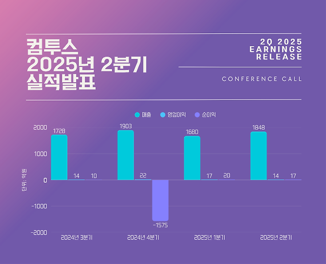 - 2025년 2분기 영업이익 14억 원, 순이익 17억 원 ㄴ 영업이익률은 0.7%로 YoY 0.1%p, QoQ 0.3%p 하락