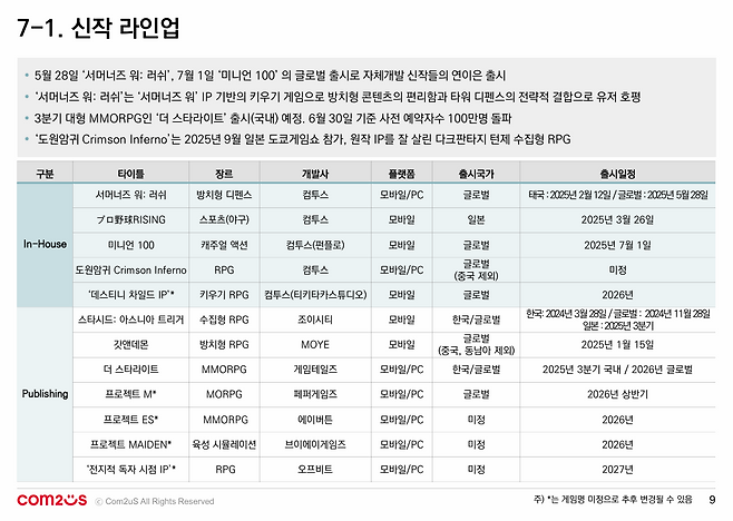 - 3분기 신작 MMORPG '더 스타라이트' 국내 출시 예정 ㄴ 6월 30일 기준 사전 예약자 100만 명 돌파 ㄴ 8월 11일 캐릭터명 선점 이벤트 시작