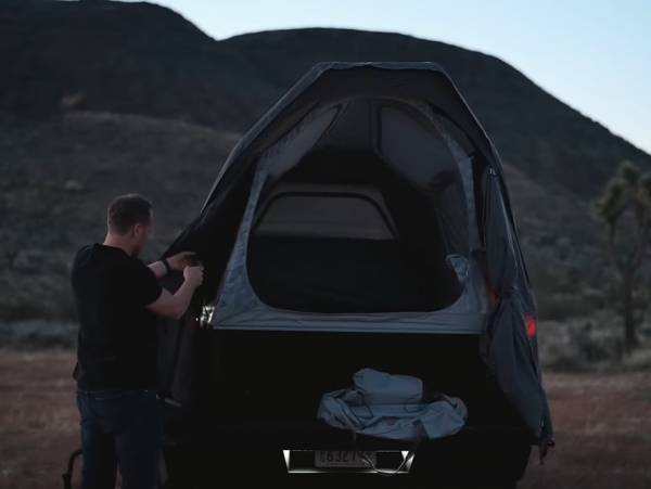 리비안 R1T 순정 텐트의 경우 R1T 디자인에 맞춰 제작했지만 일반적인 방식의 루프탑 텐트와 별다른 차이가 없다. 루프탑 텐트의 명가 야키마에서 제작했으며 가격은 2800달러(한화 약 380만원)로 사이버트럭의 베이스캠프와 큰 차이는 없다.