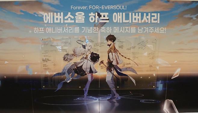 햇빛이 강하게 내리쬐던 7월 8일, 나인아크가 개발하고 카카오게임즈에서 서비스하는 '에버소울'의 반주년 기념 감사제가 서울 명동의 커뮤니티 마실에서 개최되었습니다.