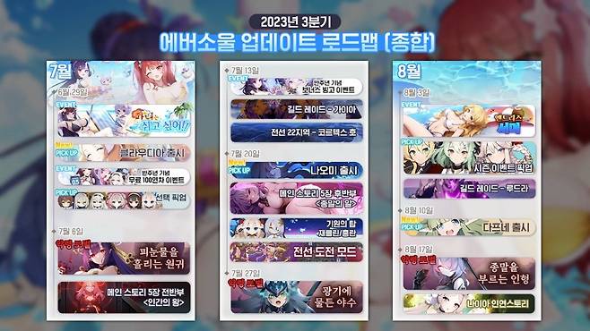 물론 계획하고 있다. 현재 3분기에 나이아와 니니가 계획되어 있으며 4분기에 하루, 플린, 도라 업데이트를 목표로 하고 있다. 여러분이 좋아하시는 페트라는 내년 초가 될 것 같다.