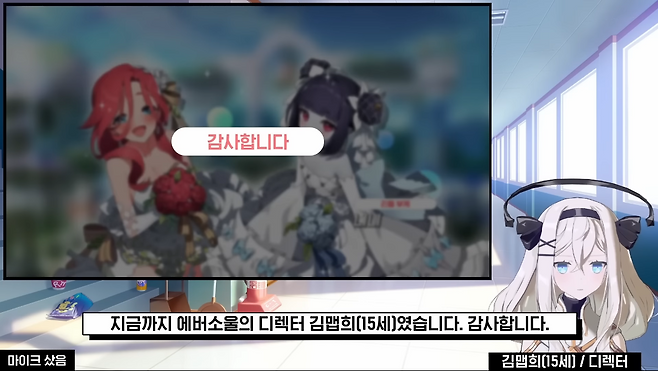 원래 마케팅 용도로 제작한 버추얼이었는데, 기획이 취소된 김에 내가 쓰게 됐다. 코로나 시대에 직원들에게 마일스톤을 소개할 때 직접 하자니 어려운 점이 있어서 시작했다. 직원들은 매 달 봐 왔다. 원래는 14세였는데, 카카오게임즈에서 게임이 15세 등급인데(앱스토어는 12세) 14세 캐릭터가 말이 되냐고 물어오기도 했고 2023년이 되기도 해서 15세로 바뀌었다. 앞으로 나이가 더 먹지는 않는다. 영원한 15세다.