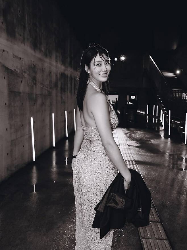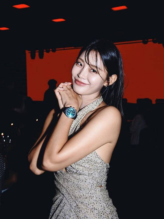 헤어는 자연스럽게 흐르는 스트레이트 웨이브로, 과하지 않게 여성스러움을 강조했고, 메이크업 또한 글로시한 립 포인트를 중심으로 한 은은한 톤으로 통일해 드레스의 존재감을 해치지 않았다. 손에 들린 블랙 자켓은 드레스의 반짝임을 더욱 돋보이게 해주는 ‘톤 다운 아이템’으로, 스타일의 균형을 섬세하게 맞춰준다.