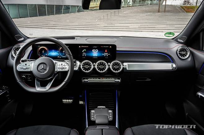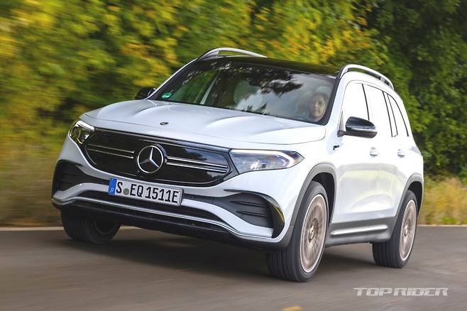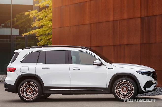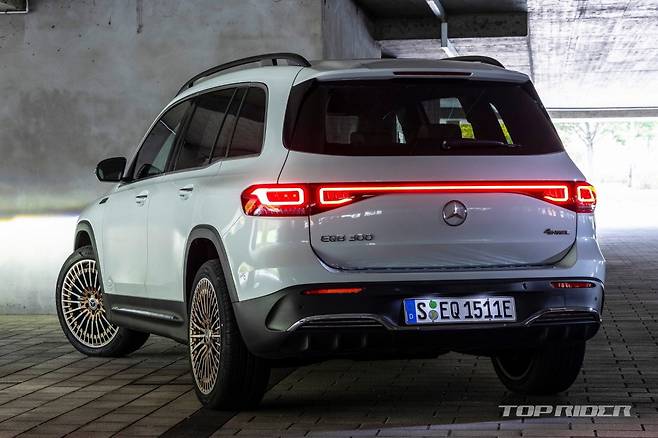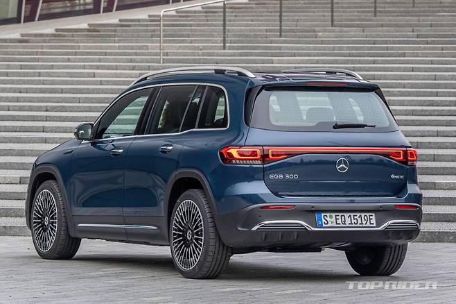 EQB 300 4MATIC AMG 라인은 벤츠 GLB를 기반으로 벤츠 전기차 전용 디자인이 적용됐다. 휠베이스는 2729mm로 트렁크 공간은 최대 1710ℓ다. 2열 시트는 6:4 폴딩 기능을 지원한다. 앞뒤로 140mm 이동이 가능하다. 7인승 모델은 3열에 2개의 개별 시트가 추가된다.