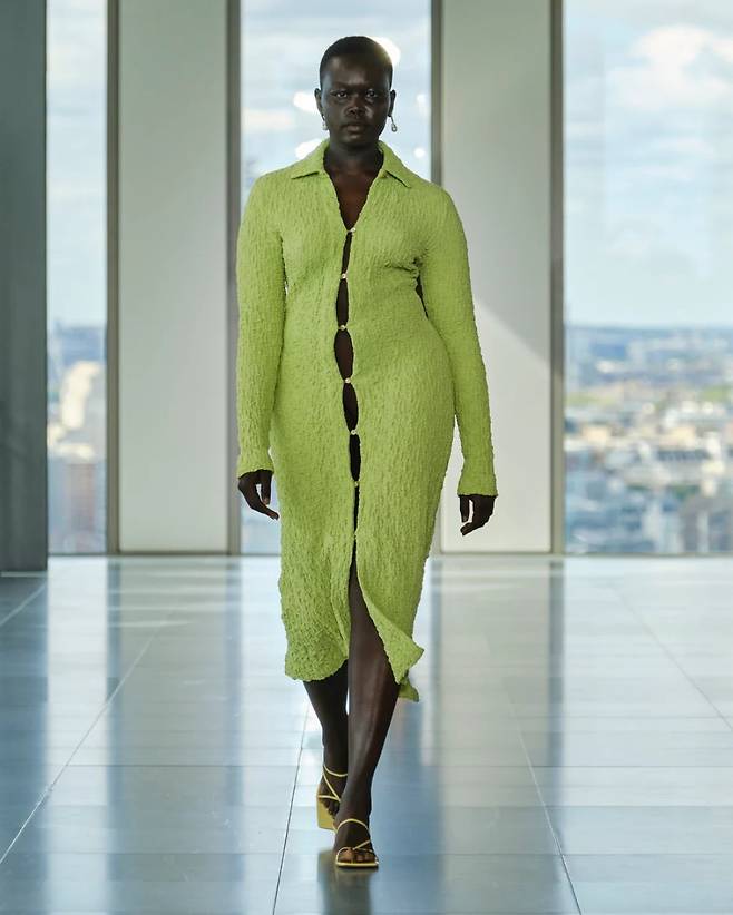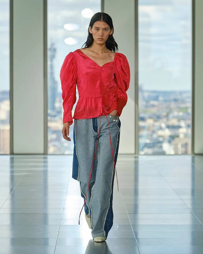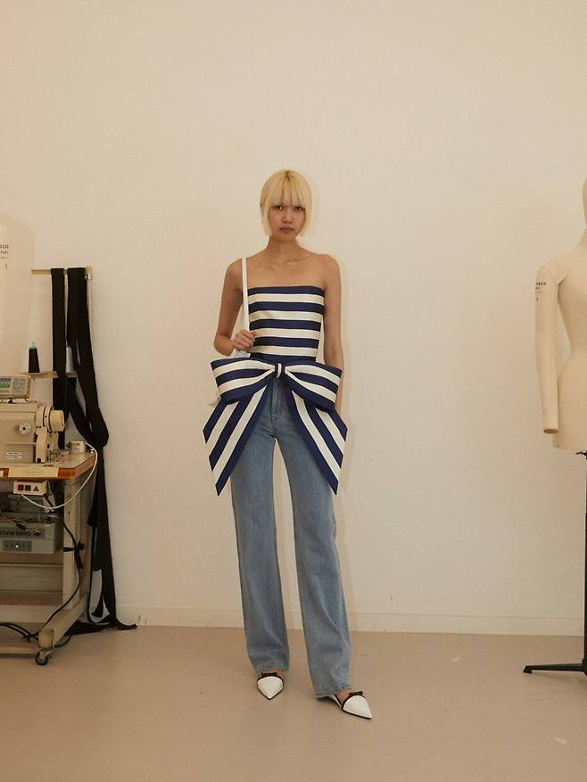 앞서 언급했듯이 메종 김해김에서는 한국의 고대 왕실이라는 키워드도 중요하게 자리 잡고 있습니다. 때문에 무척 모던해 보이는 의상들이지만 그 속에서 한국적인 요소들도 찾아볼 수 있죠. 어린 시절 김인태 디자이너는 할머니가 직접 짓던 한복 저고리나 치마를 인형 사이즈로 따라 만들어 놀곤 했다는데요. 한복 전통 옷감인 오간자나 실크에 대한 남다른 그의 애착을 컬렉션에서도 엿볼 수 있답니다.