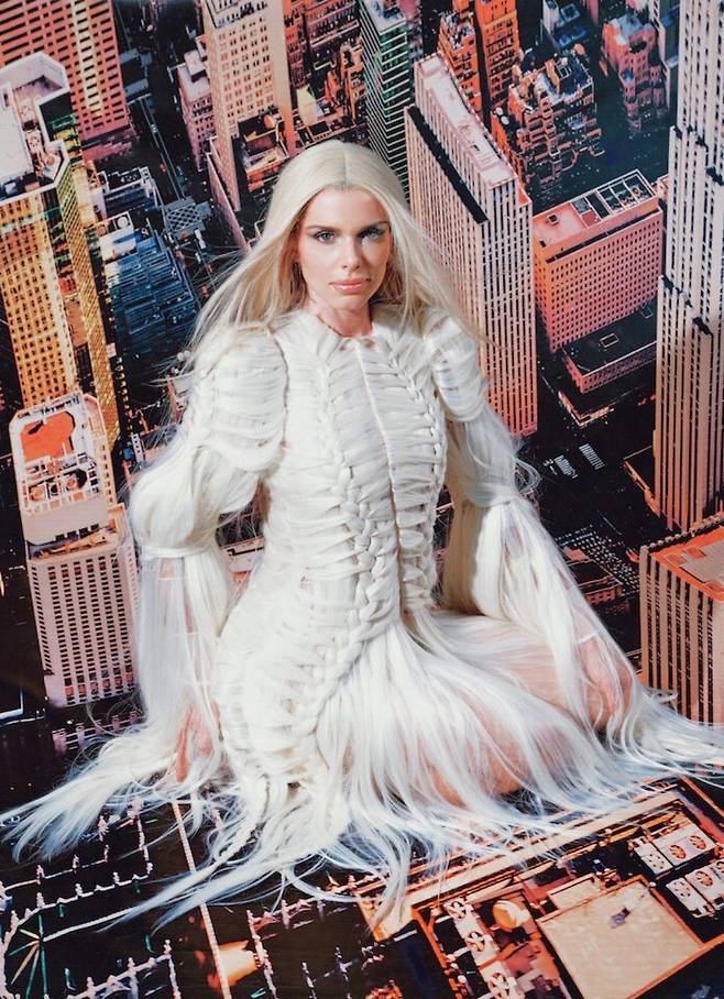 김해김의 헤어 드레스를 착용한 배우 Julia Fox