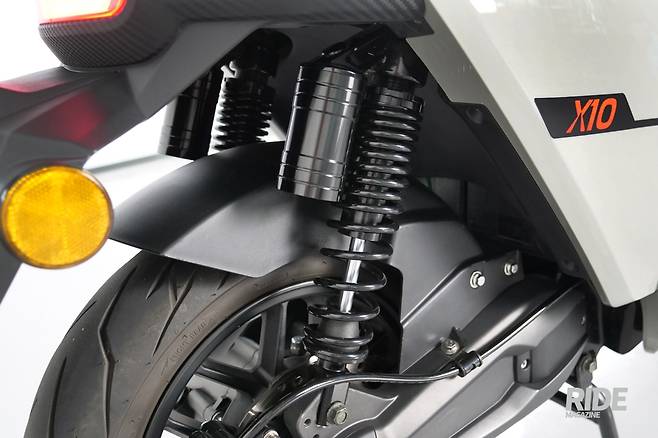 브레이크는 앞뒤 모두 디스크 방식으로, 앞이나 뒤 한 쪽만 작동시켜도 전후 브레이크가 모두 작동해 제동력을 높이는 연동 브레이크 시스템(CBS)가 장착됐다. 서스펜션은 뒷바퀴에 고성능 가스 쇼크 업소버를 양쪽으로 달아 충격 흡수력을 높여 승차감을 향상시켰다.