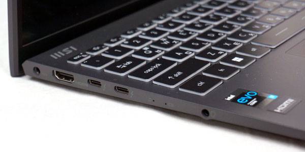 1kg 미만의 초경량 초슬림 노트북은 입출력 포트 구성도 그만큼 줄여서 확장성이 떨어지고 외부 기기 연결을 위해 별도의 USB-C 멀티 허브(Hub)나 멀티포트 독(Dock)과 같은 액세서리를 구매해야 하는 경우가 있다. 그러나 MSI 프레스티지 13 Evo A13M WIN11은 외부 USB-C 도움 없이도 기본적인 외부 장치 연결이 가능한 입출력 포트를 제공한다.