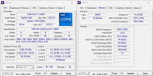 가볍지만 성능은 동등하게, 13세대 인텔 코어 i7-1360P 탑재