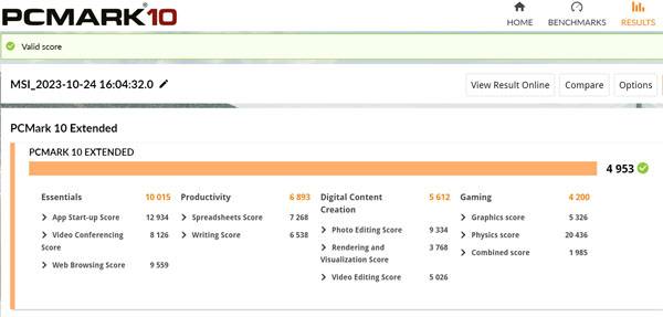비즈니스 노트북의 업무 효율성을 가늠하는 PCMark 10 Extended 테스트 결과를 보면 4,953점으로 1kg 미만의 가벼운 노트북임에도 일반 비즈니스 노트북과 동급 수준의 생산성을 제공하는 것으로 나타났다.