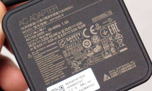 기본 제공되는 65W AC 전원 어댑터는 USB-C 방식으로 연결되기 때문에 외부 미팅이나 출장에서도 노트북 어댑터를 다른 USB-C 장치들의 배터리 충전에 활용할 수 있다. 전원 어댑터 및 전원 케이블 무게는 약 338g으로 일반 노트북 어댑터에 비하면 작고 가벼운 편이지만 이 무게조차 줄이고 싶은 사람은 20V 65W-100W급 USB-PD 충전이 가능한 GaN 충전기를 고려하는 것도 나쁘지 않다.