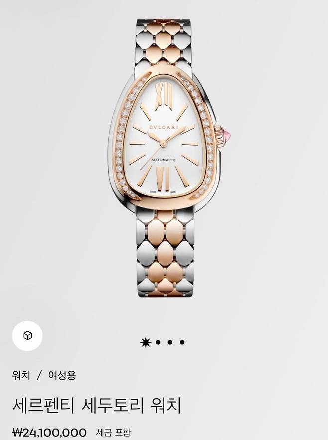 카리나가 착용한 시계는 다이아몬드를 세팅한 베젤과 화이트 오팔린 다이얼이 특징인 “세르펜티 세두토리” 시계라고 합니다. 가격 정보는 아래에서 자세히 확인하실 수 있습니다.