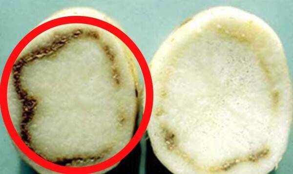 '감자 둘레 썩음병'은 1905년 독일에서 처음으로 발발한 것으로 알려져 있으며 어떤 세균에 의해 발생한다고 전해집니다. 씨가 자 절단과 파종작업 중에서 주로 전염이 된다고 하는데요. 전염의 우려가 강해 병이 발견된 밭의 감자는 모두 폐기를 해야 한다고 합니다.