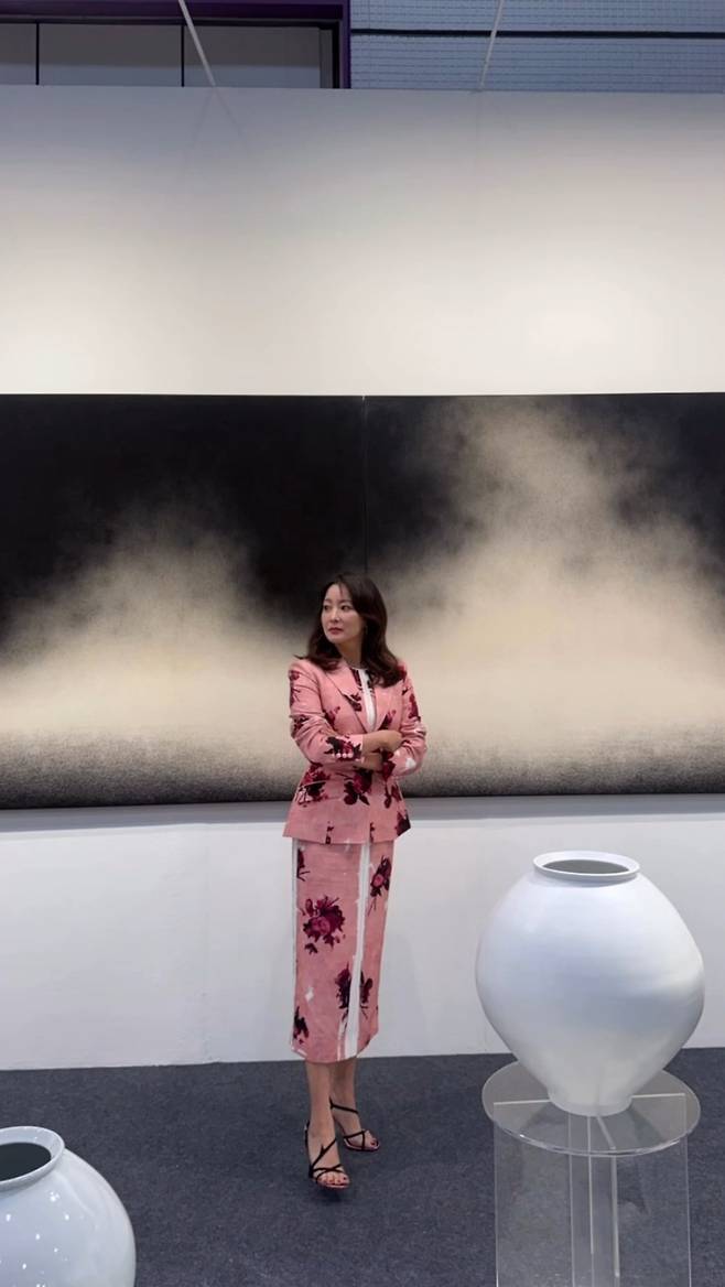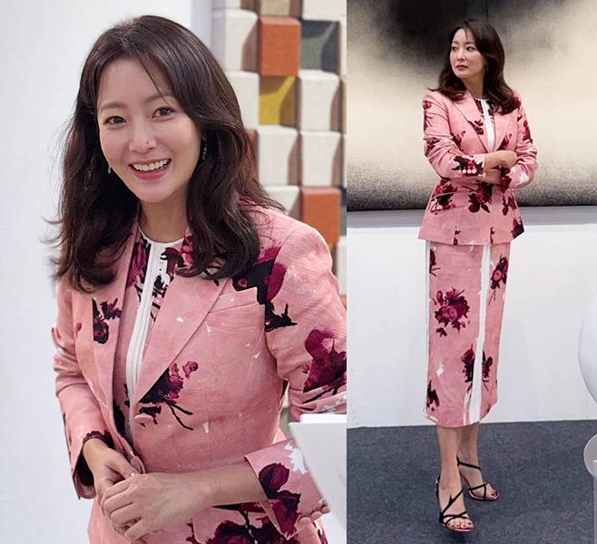 김희선은 웨이브 중단발 스타일로 우아하면서도 세련된 분위기를 연출했습니다.