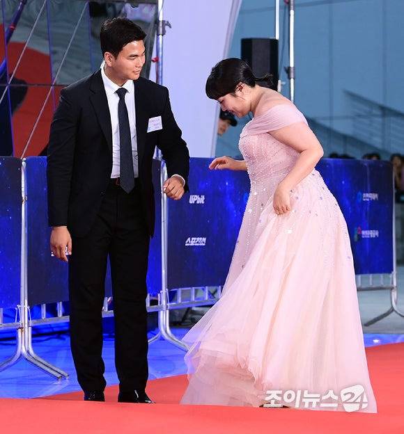 청룡 레드카펫 이수지 때문에 당황한 경호원