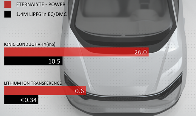 Eternalyte는 단순히 기존 리튬이온 배터리의 충전 속도를 높이는 것뿐만 아니라, 리튬 메탈 전극(Li-metal) 기반 차세대 배터리에서도 사용 가능하도록 설계됐다. 이는 이론적으로 1,600km 이상 주행 가능한 배터리 개발의 기반이 될 수 있다. 참고로, 현재형 리튬 메탈 배터리는 안정성 문제 때문에 상용화에 제약이 있었는데, 이온 전해질의 개선이 큰 돌파구가 될 가능성이 있다.