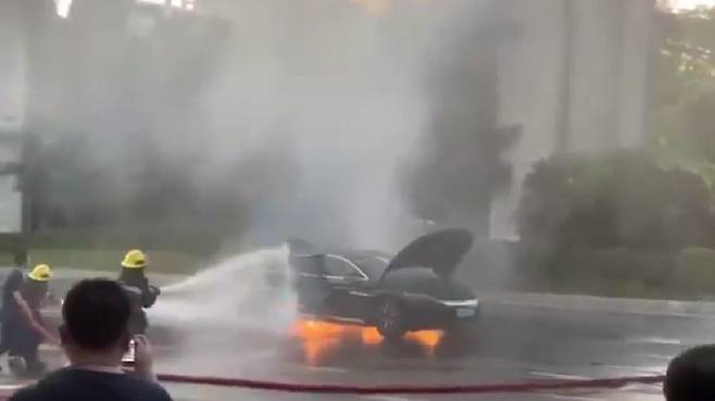 보도에 따르면, 한 EV는 보닛과 도어가 열린 채로 30분간 짙은 연기를 내뿜었고, 소방대원들은 현장에 도착해 화재가 발생할 것을 대비했다. 이후 실내에서 강한 불길이 솟구쳤고, 소방대원들은 물대포로 진화했다. 하지만, 차대에서 또 다시 불길이 살아나면서 2차 진화에 나섰다. 진화된 차량은 섀시와 2열 공간이 심하게 손상됐다.