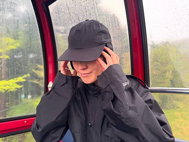 홍진경이 비 오는 날씨에 어울리는 실용적인 아웃도어 스타일을 선보이고 있다. 블랙 컬러의 방수 재킷과 캡 모자로 우천 시 필요한 기능성을 갖추면서도 스타일리시한 룩을 연출하고 있다. 창밖으로 비가 내리는 모습이 보이는 차량 안에서 촬영된 이 모습은 날씨에 맞춘 적절한 패션 선택의 중요성을 보여준다. 특히 심플한 컬러 선택으로 어떤 상황에서도 무난하게 어울리는 실용적인 스타일링이 돋보인다.