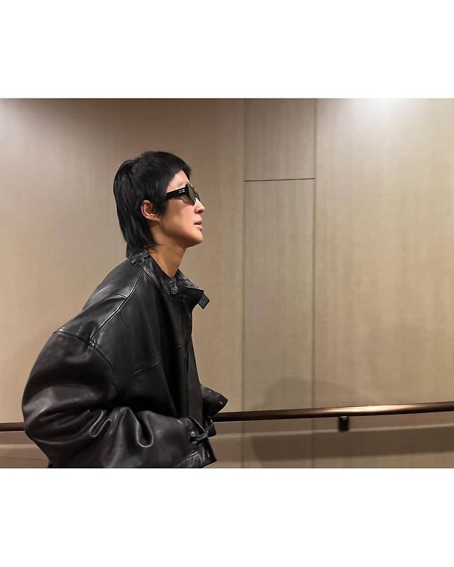 홍진경이 클래식한 블랙 레더 재킷으로 시크한 매력을 발산하고 있다. 오버사이즈 실루엣의 레더 재킷은 편안하면서도 강렬한 존재감을 드러내며, 선글라스와 함께 도시적인 분위기를 연출하고 있다. 미니멀한 스타일링으로 재킷 자체의 멋을 극대화한 이 룩은 홍진경의 세련된 패션 감각을 엿볼 수 있게 한다. 특히 어두운 톤의 의상과 대비되는 밝은 공간에서 더욱 돋보이는 스타일링이 인상적이다.