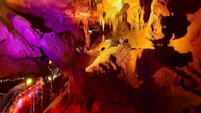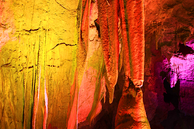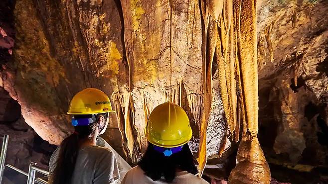 이곳은 천곡황금박쥐동굴이다. 약 4억~5억 년 전 형성된 것으로 추정되는 석회암 동굴로, 다양한 동굴 생성물과 독특한 지형을 관찰할 수 있는 공간으로 알려져 있다. 특히 종유석과 석순, 석주 등 자연이 만든 구조물이 내부 곳곳에 분포하며 지질학적 가치가 높은 장소로 평가된다.