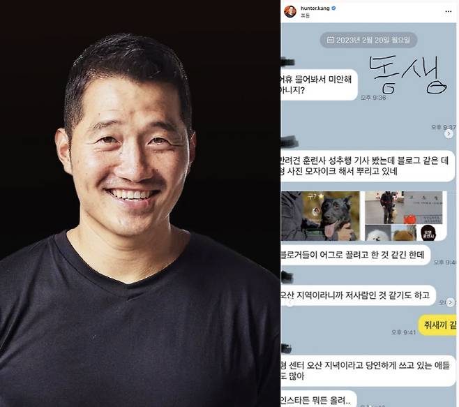 지난 20일 강형욱은 동생과의 나눈 메시지 공유하며 "나 아님! 나는 남양주 주민, 보듬도 남양주에 있음"이라며 성추행 훈련사가 아님을 강조했다.