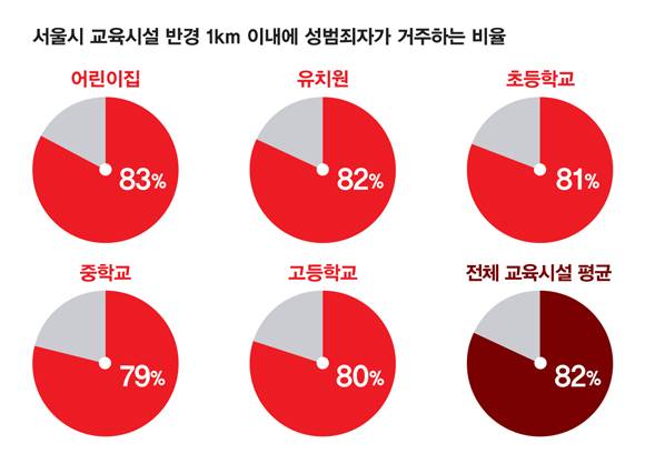 성범죄자 82%가 초등학교 반경 500m 이내 거주