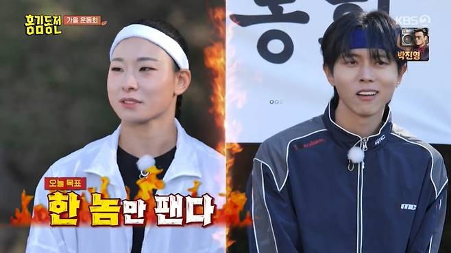 2일 방송된 KBS2 ‘홍김동전’에는 멤버들이 김혜선, 장은실, 춘리, 심으뜸, 김명선 등 강력한 소녀들로 뭉친 백군을 상대로 가을 운동회를 펼치는 모습이 전파를 탔다.