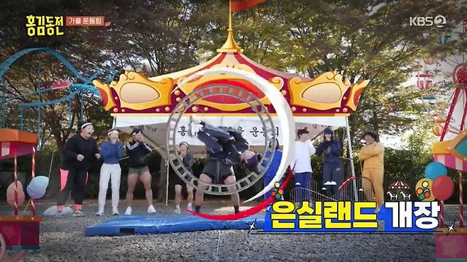 2일 방송된 KBS2 '홍김동전'에는 멤버들이 김혜선, 장은실, 춘리, 심으뜸, 김명선 등 강력한 소녀들로 뭉친 백군을 상대로 가을 운동회를 펼치는 모습이 전파를 탔다.
