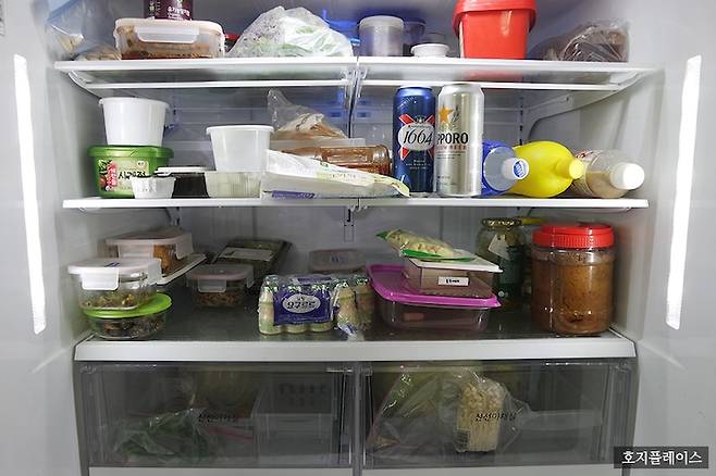 어떤 기사를 보니 냉장고의 냉기는 위에서부터 아래로 쫙 퍼져 내려가기 때문에 맨 윗칸이 가장 냉기가 강하다고 하더라구요. 그래서 쉽게 균이 번식할 수 있는 계란이나 두부, 고기 등을 맨 윗칸에 놓고, 너무 냉기가 강하면 얼어버릴 수도 있는 채소는 맨 밑칸에 두면 좋다고 해요!
