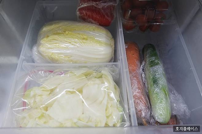 랩핑을 하면 산소를 차단해주기 때문에 안하는 거랑은 야채 수명이 천지차이더라구요. 저도 예전에는 귀찮아서 그냥 막 넣어놨었는데 야채는 쉽게 무르니까 웬만하면 장을 봐오자마자 랩핑을 해요. 처음에는 귀찮지만 한번 습관이 들면 금방 한답니다.