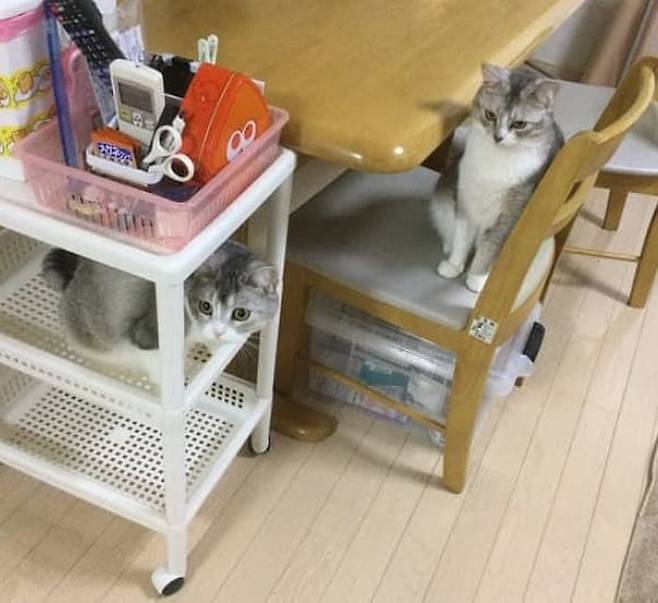 사연은 이렇습니다. 고양이들을 키우는 집사는 SNS를 통해 거실에서 간편하게 이동할 수 있으면서도 물건을 보관할 수 있는 이동식 수납 선반을 샀다가 벌어진 일이 담긴 사진을 공개했죠.