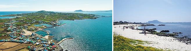 둘레 17㎞, 면적 605㏊ 정도의 우도는 제주도에 소속된 60여 개의 섬 중 가장 넓습니다. 완만한 오름과 층층이 쌓인 해안 절벽, 흰색의 홍조단괴가 부서져 생긴 해변은 손때 타지 않은 그대로의 제주를 마주할 수 있습니다.