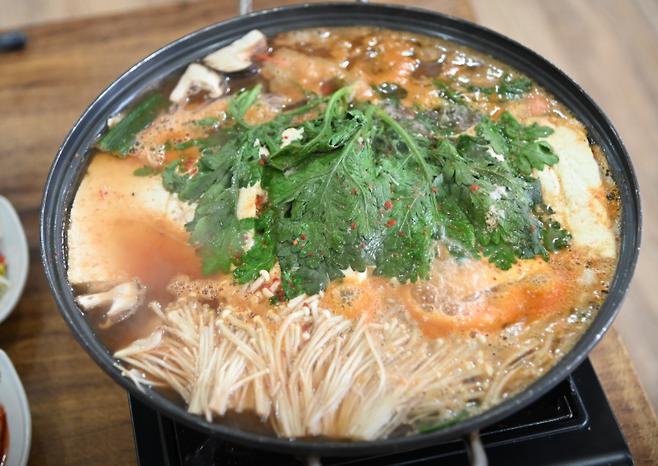 순두부와 두부가 듬뿍 들어가는 전골 메뉴로 여러 명이 함께 먹기 좋습니다.방송에서도 소개된 대표 메뉴입니다.