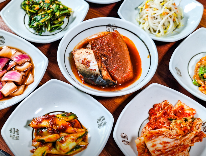 반찬은 약 7~8가지 정도 제공되며 간이 강하지 않고 정갈한 편입니다.대부분 리필이 가능해 든든하게 식사를 할 수 있다는 후기가 많습니다.