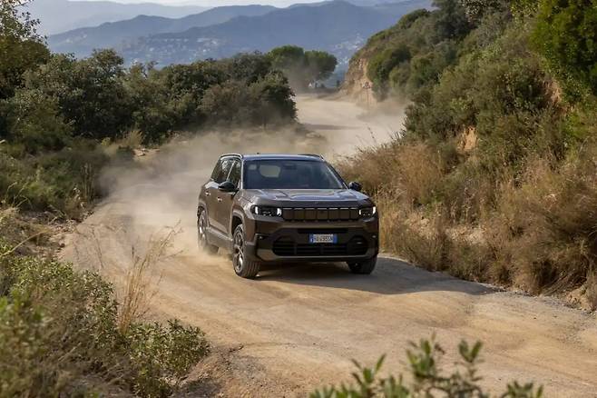 전기차로 변신했지만 컴패스는 지프의 오프로드 유전자를 포기하지 않았다. 셀렉-테레인 시스템이 눈, 모래, 진흙 등 다양한 노면 조건에 맞춰 차량의 주행 특성을 조절하며, 플러그인 하이브리드 모델에는 전용 일렉트릭 모드가 추가됐다. 4xe 사륜구동 모델은 10mm 추가 서스펜션 리프트로 지상고를 높여 27도 접근각, 31도 이탈각, 16도 램프각을 확보했다. 매트 마감 후드는 오프로드 주행 시 눈부심을 줄이고, 모듈러 범퍼는 나뭇가지 긁힘을 최소화하도록 설계됐다.