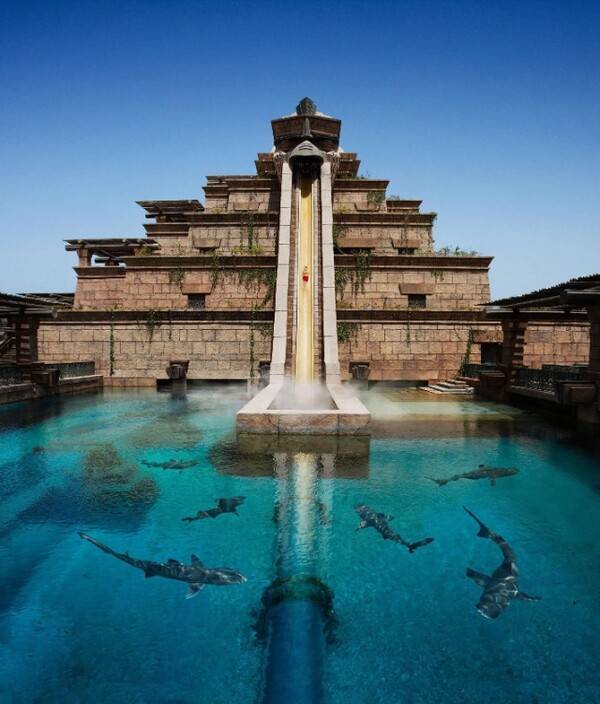 두바이의 인공섬 프로젝트로 생겨난 팜 주메이라에는 전설 속의 아틀란티스를 재현한 '아틀란티스 더 팜'이라는 호텔이 자리하고 있는데요. 이 호텔 수영장에는 세계에서 가장 긴 워터슬라이드를 타며 수중을 탐험할 수 있습니다.