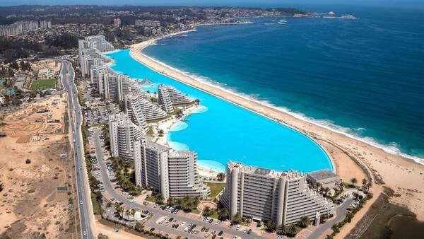 '산 알폰소 델 마르'는 칠레 알가로보에 있는 리조트인데요. 이곳의 수영장은 세계에서 가장 큰 수영장이라는 칭호를 가지고 있을 정도로 으리으리한 크기를 자랑합니다. 약 8만 평당 미터에 이르는 수영장의 규모는 월드컵 축구장 8개를 합쳐진 크기와 비슷하다고 하는데요.
