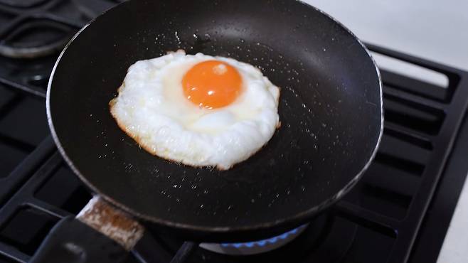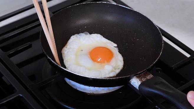 다시 계란을 부쳐 보자 계란이 달라붙지 않고 후라이가 잘 완성되었답니다.