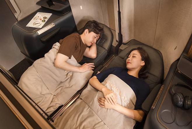 승객의 프라이버시를 보장할 수 있는 디자인은 가장 큰 강점이다. 사실상 독립된 공간으로 이뤄져 있으며, 좌석 위쪽은 개방해 답답하지 않게 했다. 좌석 등받이를 180도 눕혀 침대처럼 활용할 수 있다. 좌석 시트 길이는 기존보다 길어진 78인치(약 198㎝)이며 좌석 간 간격은 46인치, 좌석 너비는 21인치로 넉넉한 공간을 갖췄다. 팔걸이 옆 개인용 공간을 확장해 편의성도 높였다. 컵을 놓을 수 있는 테이블과 개인 물품 보관함, 휴대전화 무선 충전기, 220·110V 겸용 콘센트, 2개의 고속 USB-C 포트 등을 사용할 수 있다.