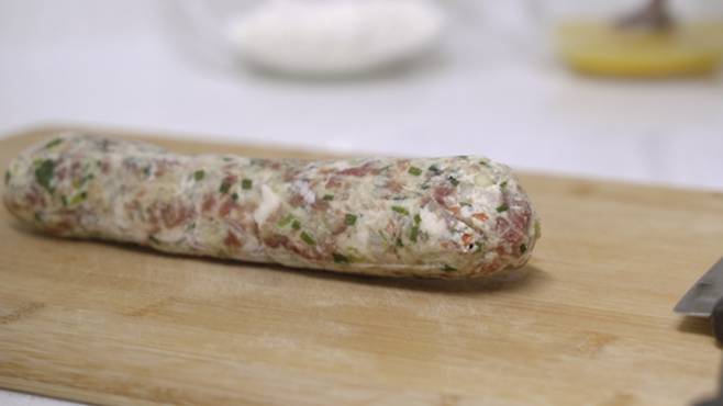 냉동시킨 후, 약간 소시지 같은 느낌이 나네요. 칼로 일정한 간격으로 썰어 주기만 하면 끝!